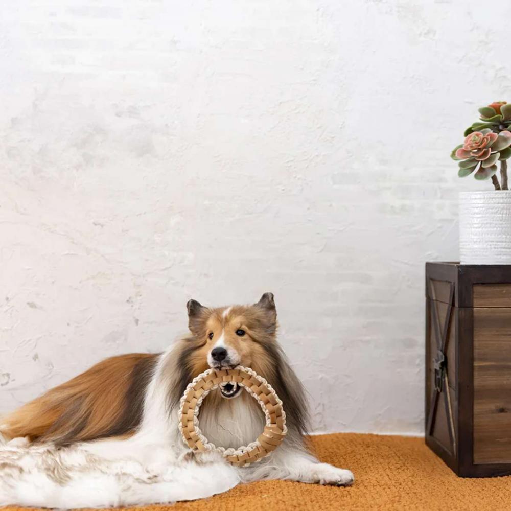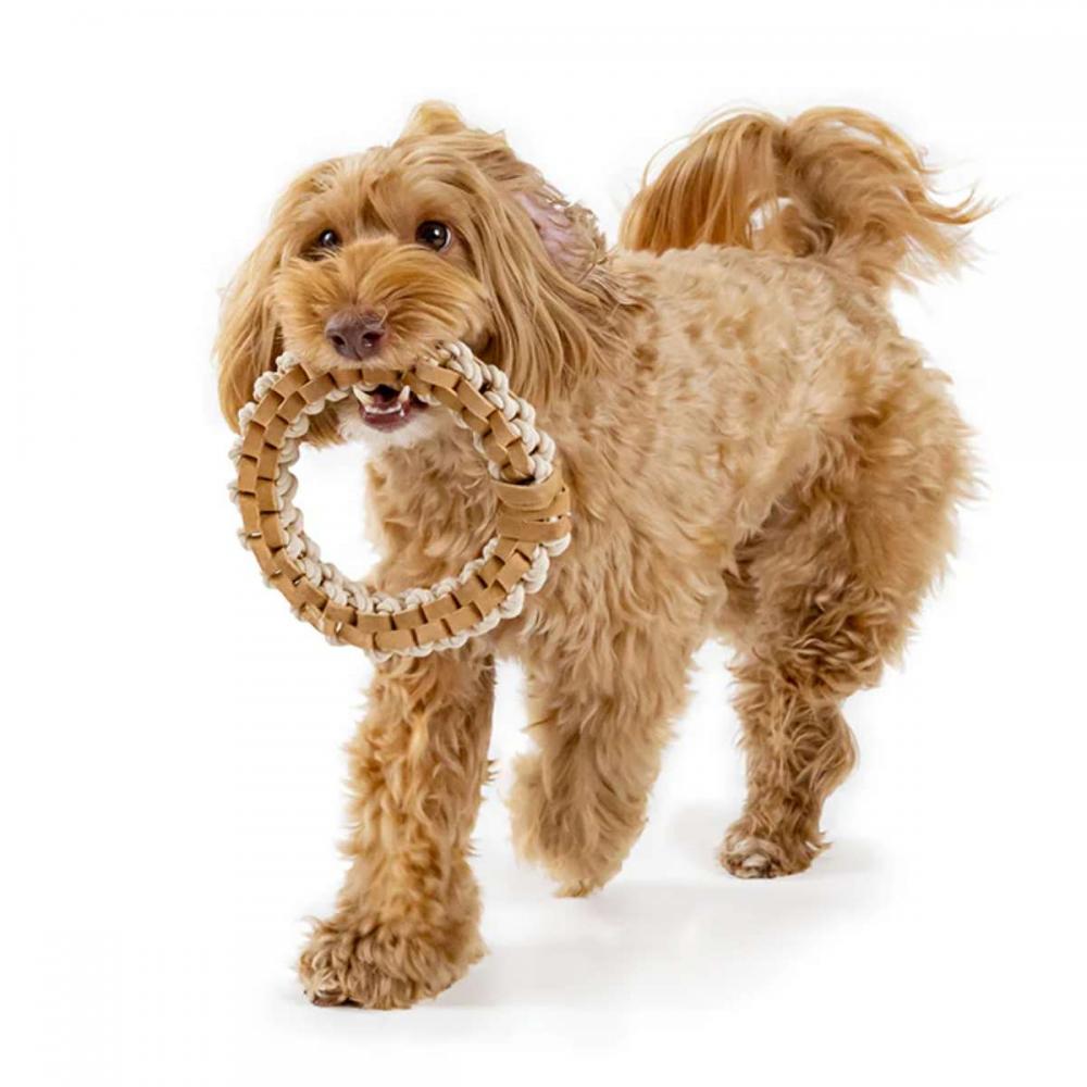 植物タンニンなめしで作られたレザーとコットンの犬用おもちゃ
