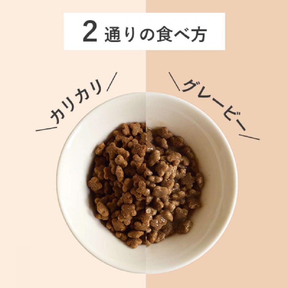そのままドライフードとしてはもちろん、水を加えるとグレービースープスタイルのごはんとしても与えられます♪