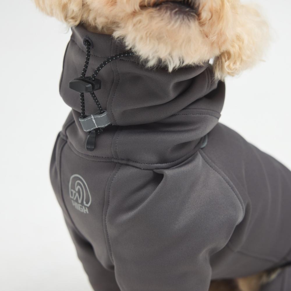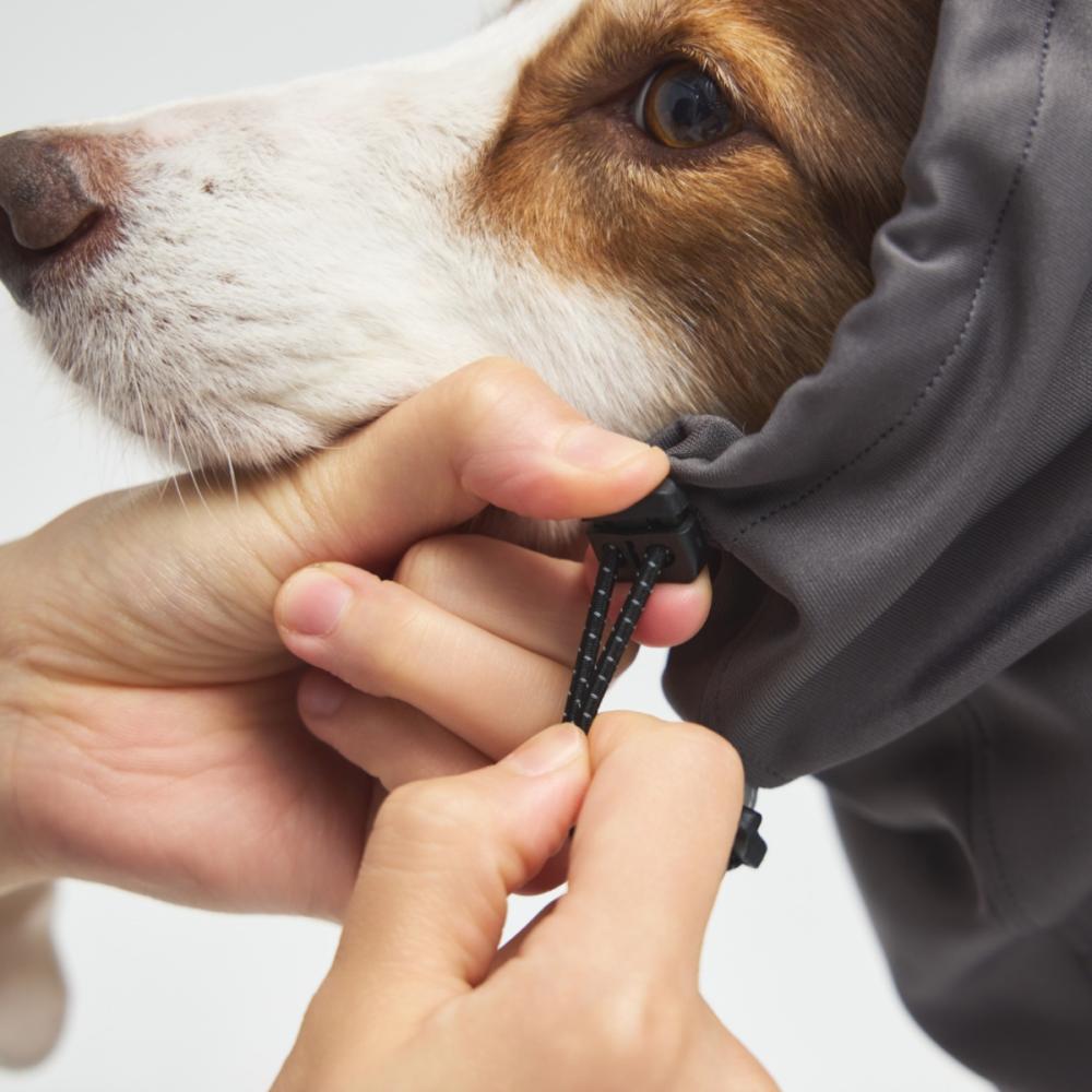 立体的な縫製により、首から頭部まで優しくフィットします。用途に応じてストラップでサイズを細かく調整でき、愛犬にぴったりの着心地を実現します。