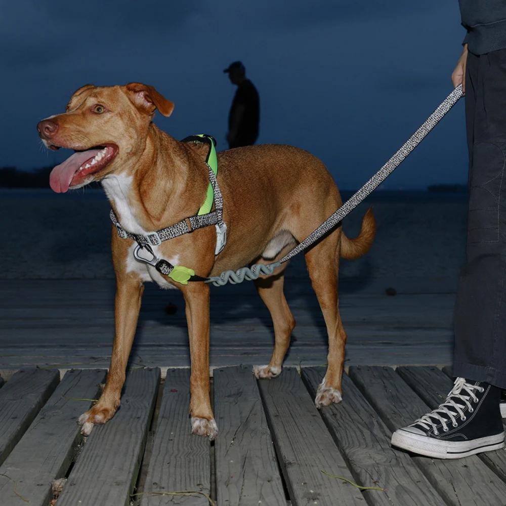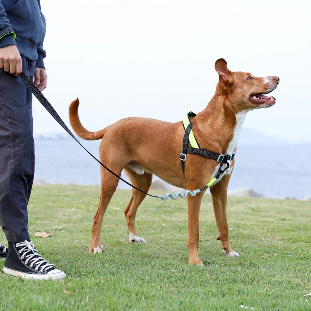 このラフリードは、リード本体に備え付けられたポリエチレンスプリングが伸縮することで、愛犬の引っ張りによる衝撃を緩和・吸収します。