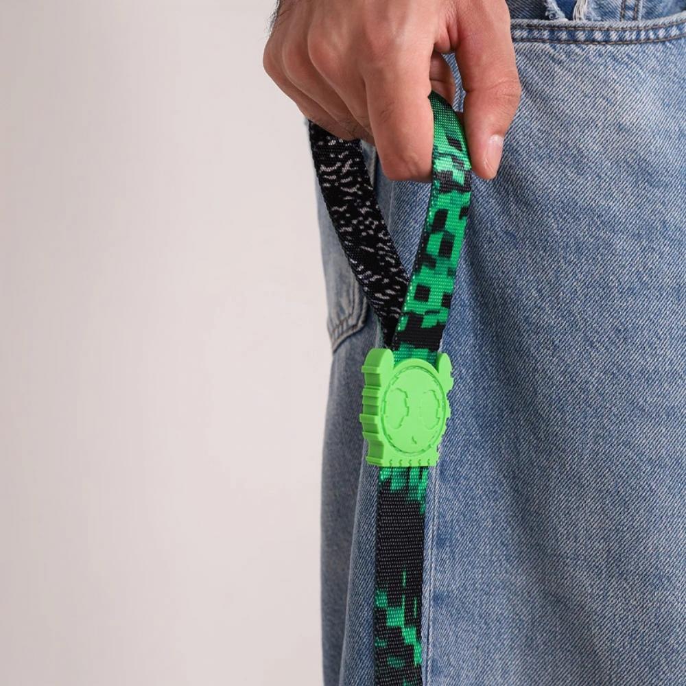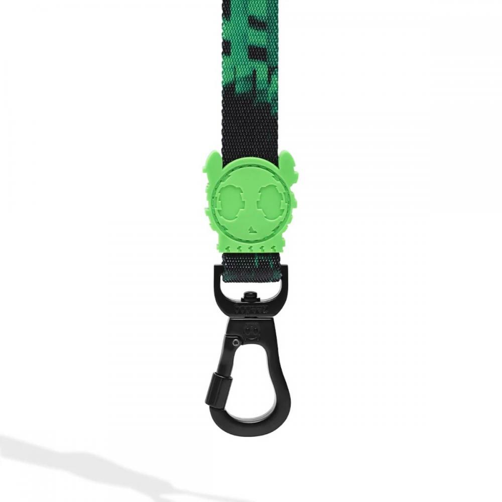 柔らかく高い耐久性を持つzee.dogのリードは、ゴム製のスカルエンブレムをアクセントにした、遊び心のあるデザインが特徴です。