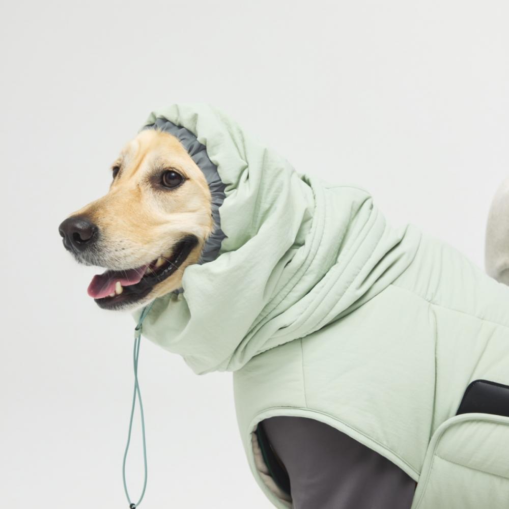 表面に施されたナイロンワッシャー加工が優れた撥水性を発揮し、雪、雨、風といった厳しい天候から愛犬を暖かく守ります。
