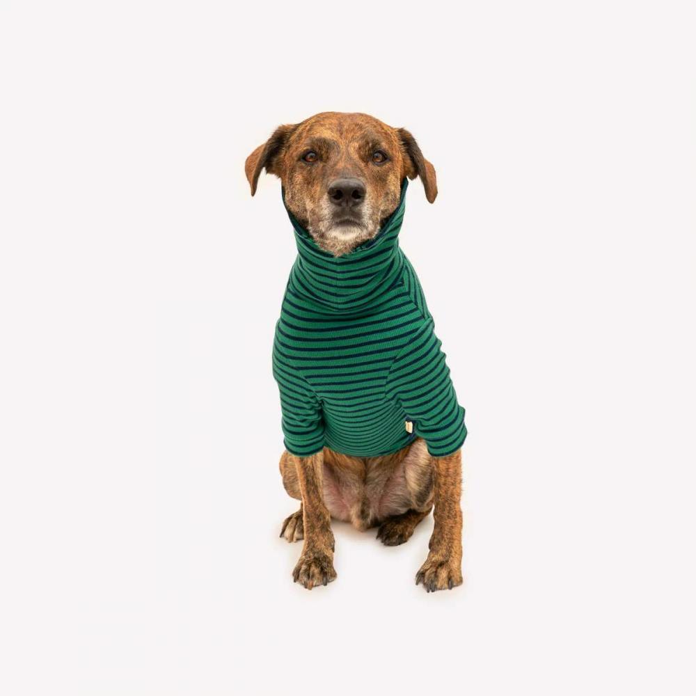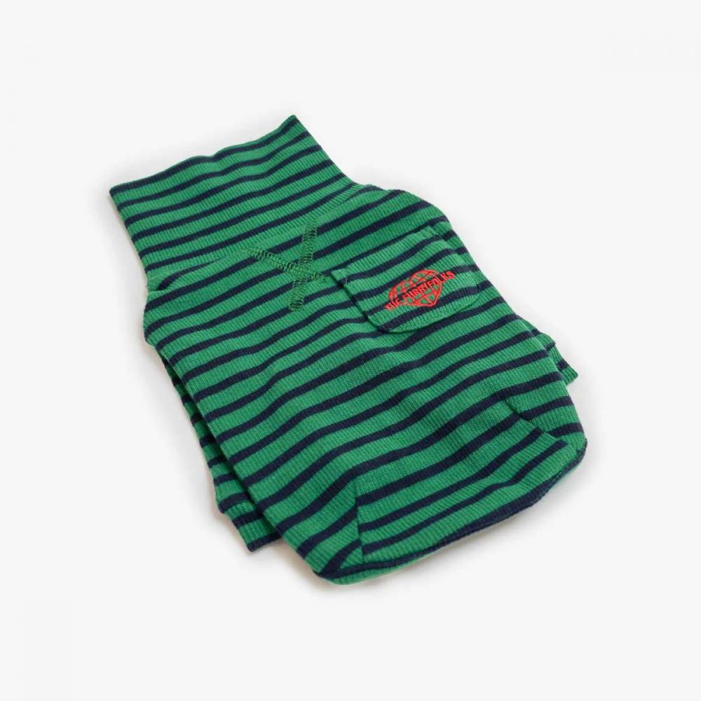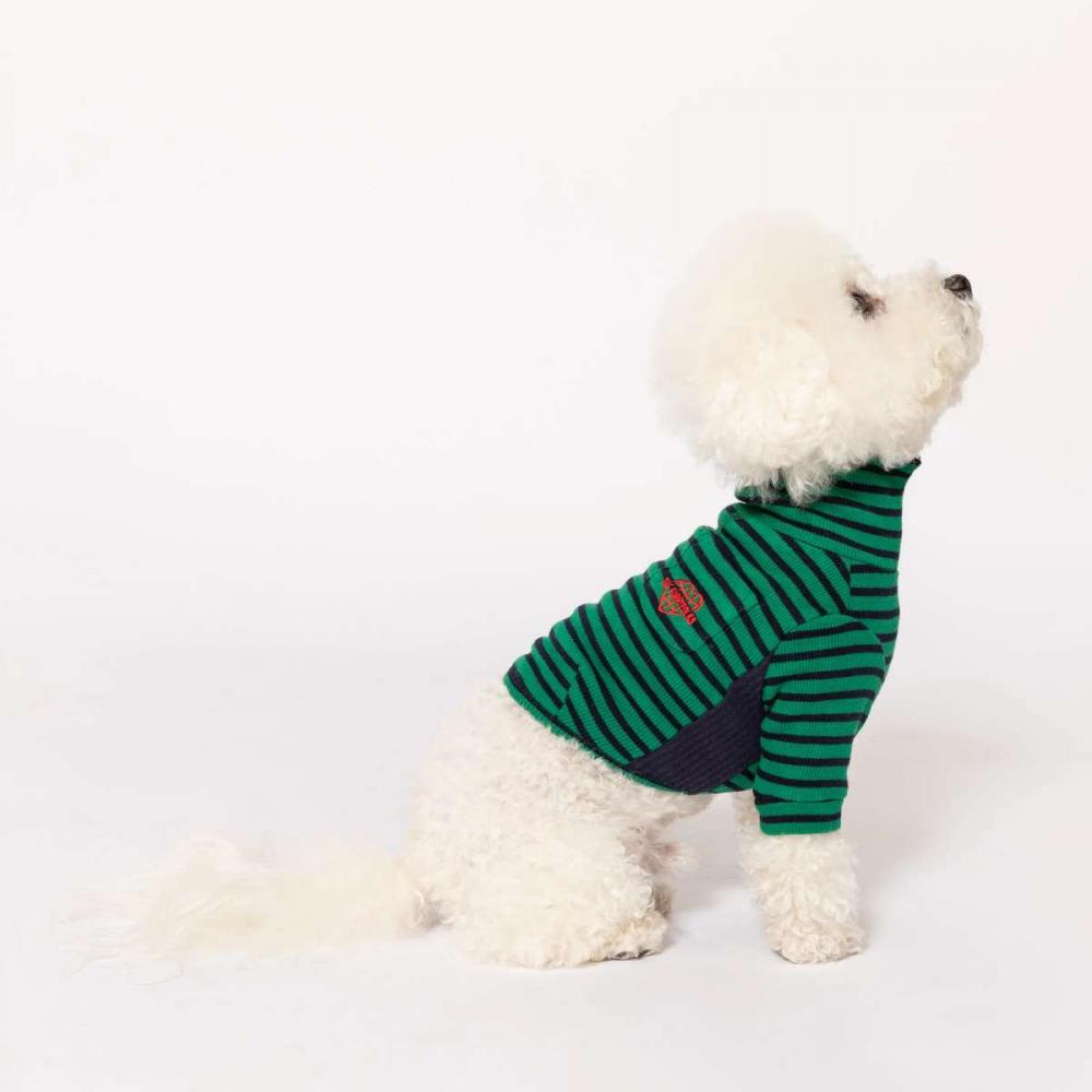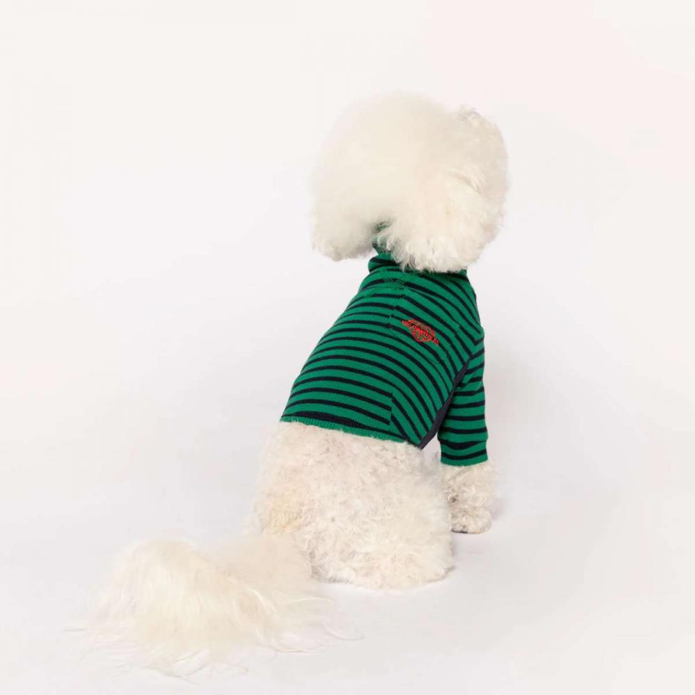 【the furryfolks ザ・パリフォックス】Stripe Tee Green & Navy S L XLサイズ グリーン&ネイビー ストライプ 襟付き 犬 服 ウェア