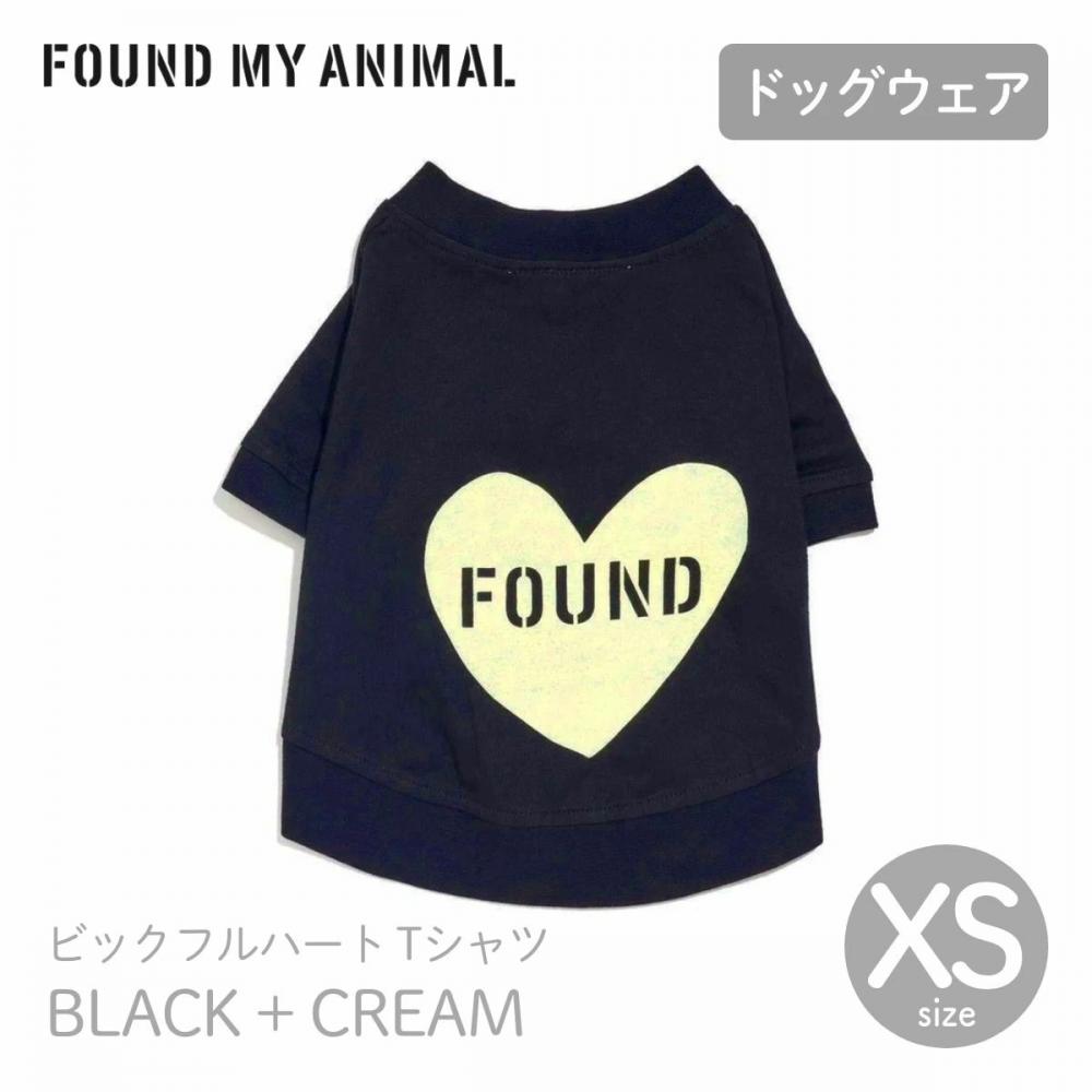 【FOUND MY ANIMAL ファウンドマイアニマル】ビックフルハートTシャツ BLACK + CREAM ブラック+クリーム XSサイズ【ネコポス対応】