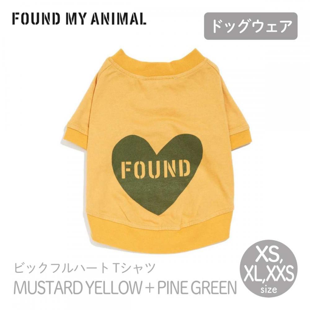 【FOUND MY ANIMAL ファウンドマイアニマル】ビックフルハートTシャツ マスタードイエロー+パイングリーン S XL XXL サイズ【ネコポス対応】