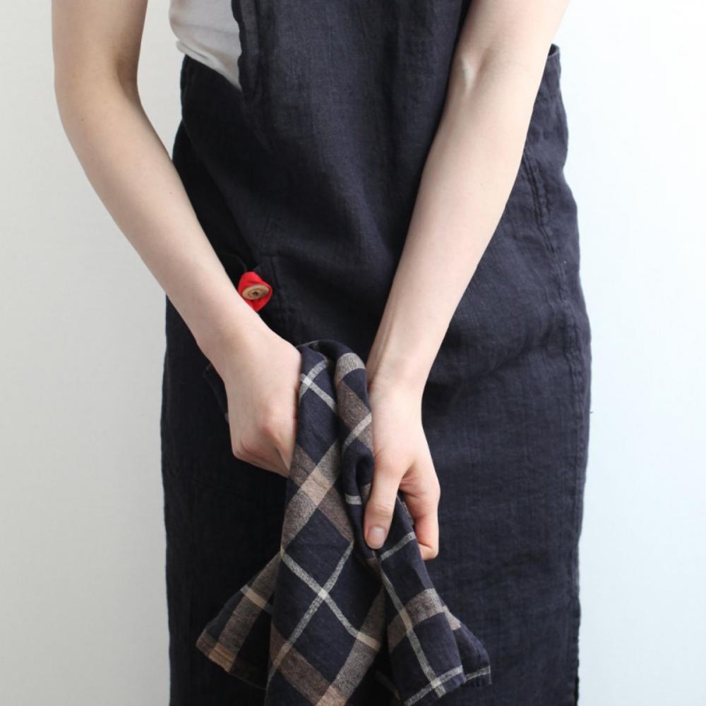 ポケット部分にボタンが付いているので、キッチンクロスなどを掛けて使えます。