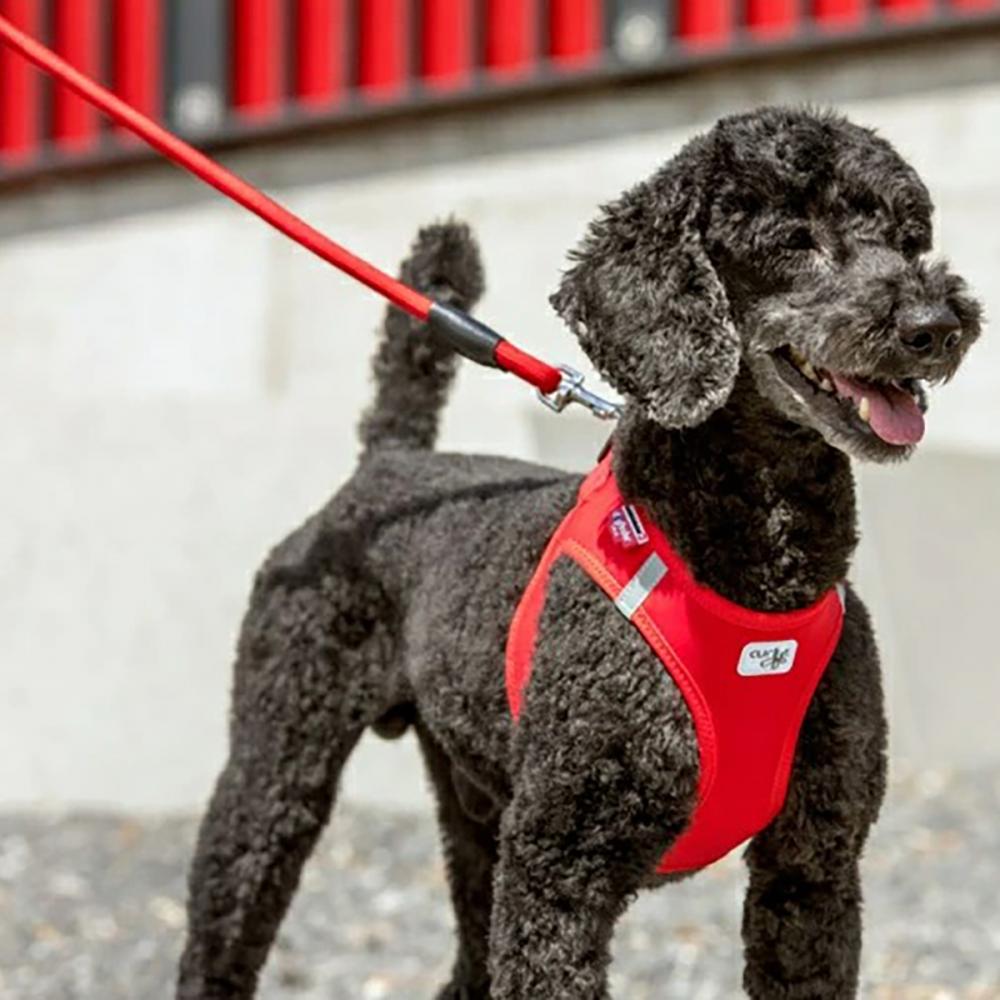 Curli(カーリー)の「ストレッチコンフォートドッグリード」は便利なマナー袋フォルダー付き! ロープ自体にストレッチ性があるため、愛犬が引っ張った際の衝撃を吸収し、愛犬の体にもオーナー様の手にも優しい設計です。 Mサイズは体重25kgまでの愛犬に(Curliハーネスサイズ 3XS~Sがオススメ)