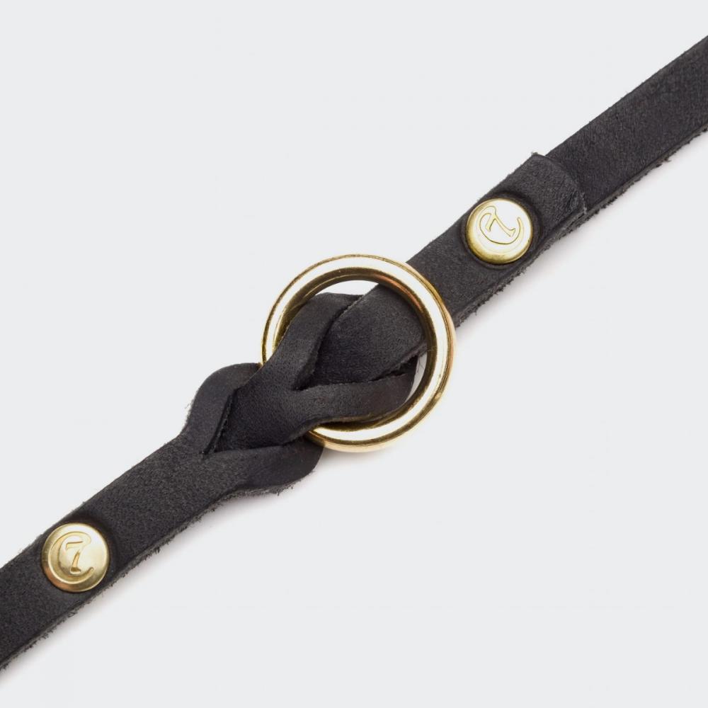 ●素材と色:黒のグリースレザー(油脂加工革)に、美しい編み込みのディテールを施しました。