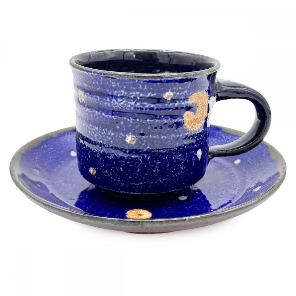 日高見窯 カップ&ソーサー ルリ釉