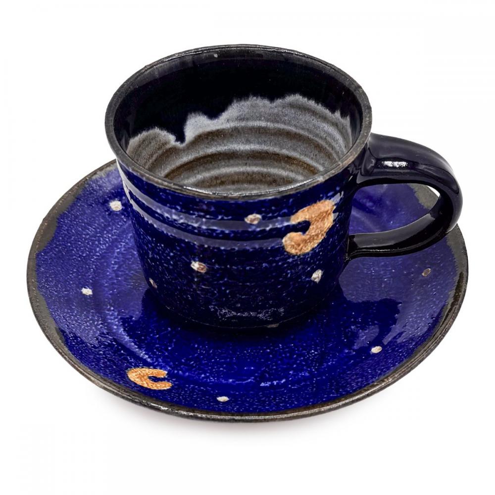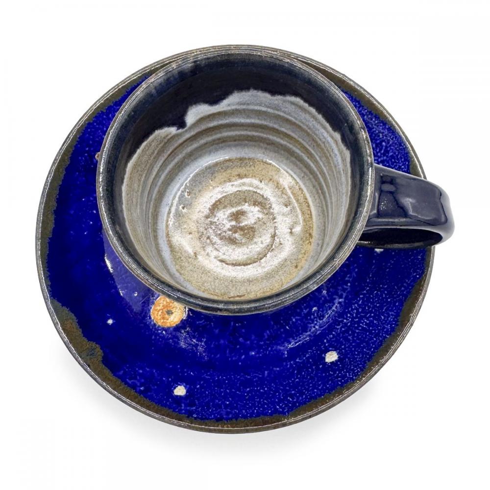 吸い込まれるような深い瑠璃色の美しさが際立つ、日高見窯のカップ&ソーサーです。