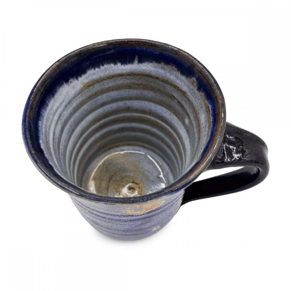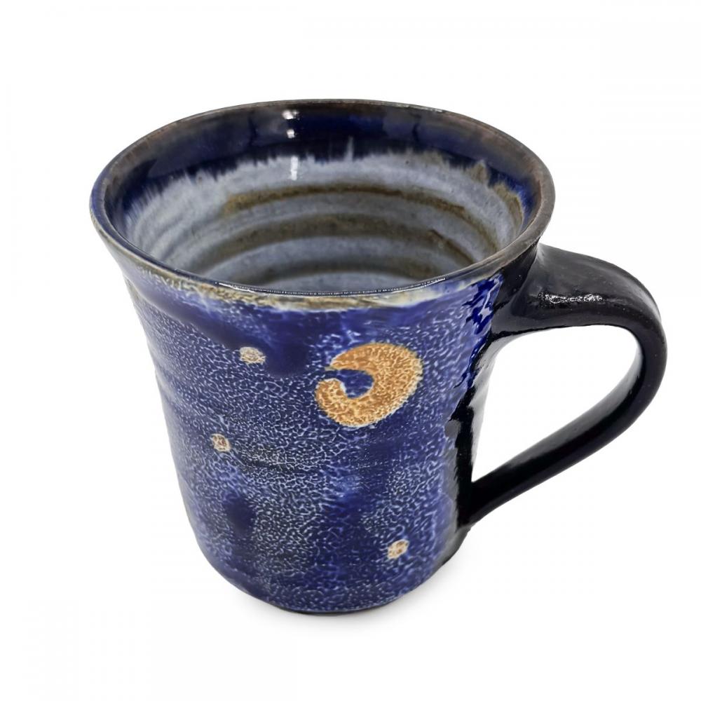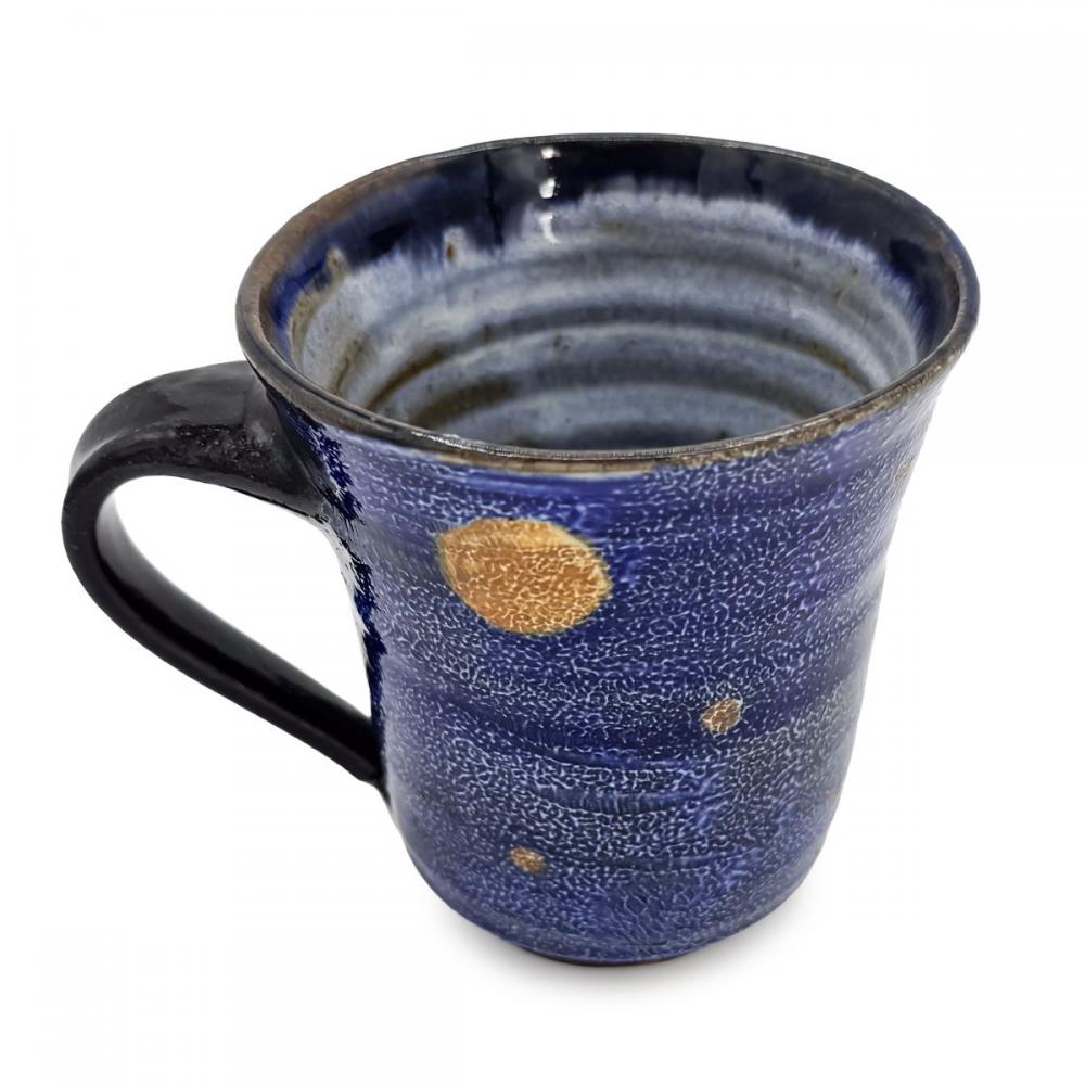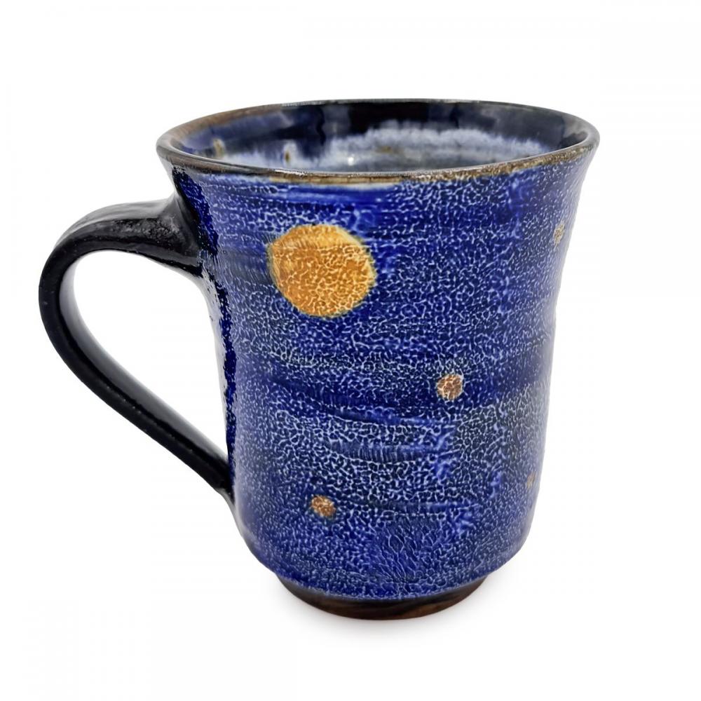 吸い込まれるような深い瑠璃色の美しさが際立つ,日高見窯のマグカップです。